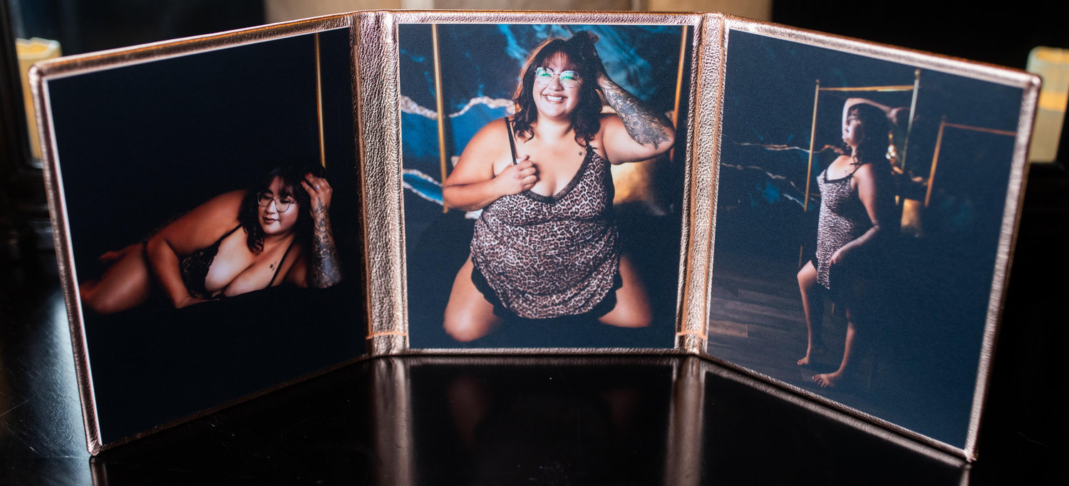 A private studio session created to help you feel confident and celebrated — with guidance, professional posing, and artwork designed just for you.